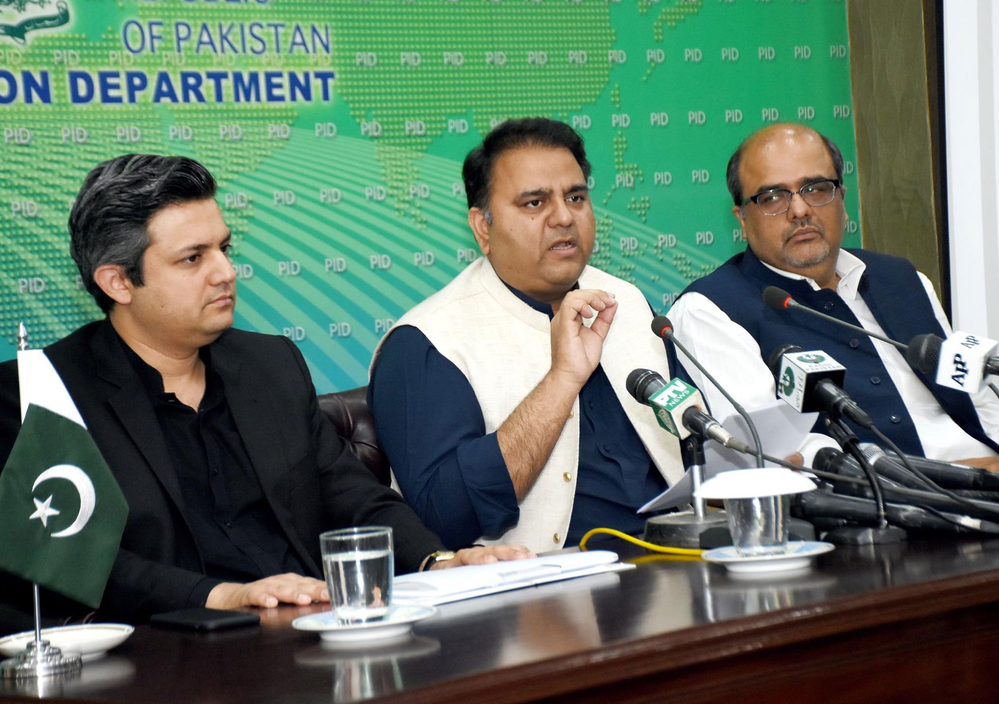 اسلام آباد میں وفاقی وزیر اطلاعات فواد چوہدری، وزیر مملکت حماد اظہر اور وزیر اعظم کے معاون خصوصی برائے احتساب شہزاد اکبر نے پریس کانفرنس کی۔