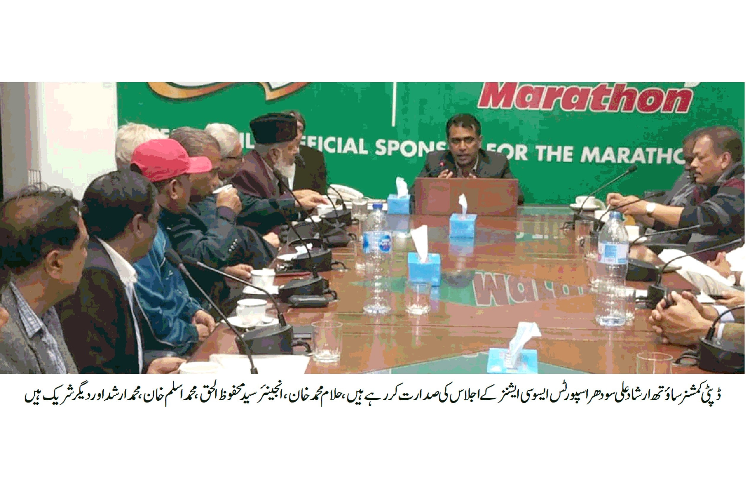 اجلاس میں کمشنر کراچی اور ڈپٹی کمشنر سائوتھ کے اسپورٹس کوارڈینٹر غلام محمد خان ،سندھ اولمپکس ایسوسی ایشن کے نائب صدر انجینئر سید محفوظ الحق ،میڈیا کوارڈینٹر آصف عظیم ،سٹی اسپورٹس ایسوسی ایشن کے چیئر مین محمد اسلم خان ،سندھ باکسنگ ایسوسی ایشن کے صدر اصغر بلوچ ، سندھ ٹینس ایسوسی ایشن کے سنیئر نائب صدر خالد رحمانی ،پاکستان یوگا اسپورٹس فیڈریشن کے سیکریٹری خالد بروہی ،سیکریٹری اطلاعات محمد ارشد ،سندھ جوڈو ایسوسی ایشن کے سیکریٹری محمد رفیق ،سندھ شوٹنگ بال ایسوسی ایشن کے فنانس سیکریٹری اعجاز احمد قریشی ،ٹگ آف وار ایسوسی ایشن کے جاوید اقبال بیگ اور عظمت پاشا ،سندھ فٹ بال اویلفیئر ایسوسی ایشن کے چیئر مین محمد سلیم خمیسانی ،نیشنل بنک شعبہ اسپورٹس کے پبلک ریلیشن آفیسر عظمت اللہ خان ،سندھ سائیکلنگ ایسوسی ایشن کے کلیم اعوان ،کراچی ویمن ٹینس کی فرح ریاض ،پیرا اسپورٹس اور دیگر موجود تھے ڈپٹی کمشنر سائوتھ ارشاد علی سودھر نے کہاکہ شہر خصوصاً دسٹرکٹ سائوتھ میں کھیلوں کے تمام شعبوں میں ٹیلنٹ موجود ہے ہم ان کی بھر پور سرپرستی کرکے اپنے ان ٹیلنٹ کو اُجا گر اور دنیا میں پاکستان کا نام روشن کرسکتے ہیں ڈپٹی کمشنر سائوتھ نے کھیلوں کی تنظیموں کو یقین دلا یا کہ کھیل اور کھلاڑیوں کی مکمل سرپرستی کروں گا اور کھیلوں کے فروغ میں درپیش مسائل کو ترجیحی بنیادوں پر حل کیا جائیگا اجلاس میں کھیلوں کی شخصیات نے شاندار اکامیاب میراتھن کے انعقاد پر کمشنر کراچی افتخار شالوانی اور ڈپٹی کمشنر سائوتھ ارشاد علی سودھر کو مبارکباد پیش کرتے ہوئے اپنے ہر ممکن تعاون کا یقین دلایا۔