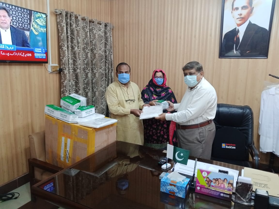 پروفیسر ملک محمد وحید نے کورونا وائرس کے پیشِ نظر 50 کِٹس سوٹ، 2500 سرجیکل ماسکس، محکمہ صحت جہلم کو عطیہ کیا