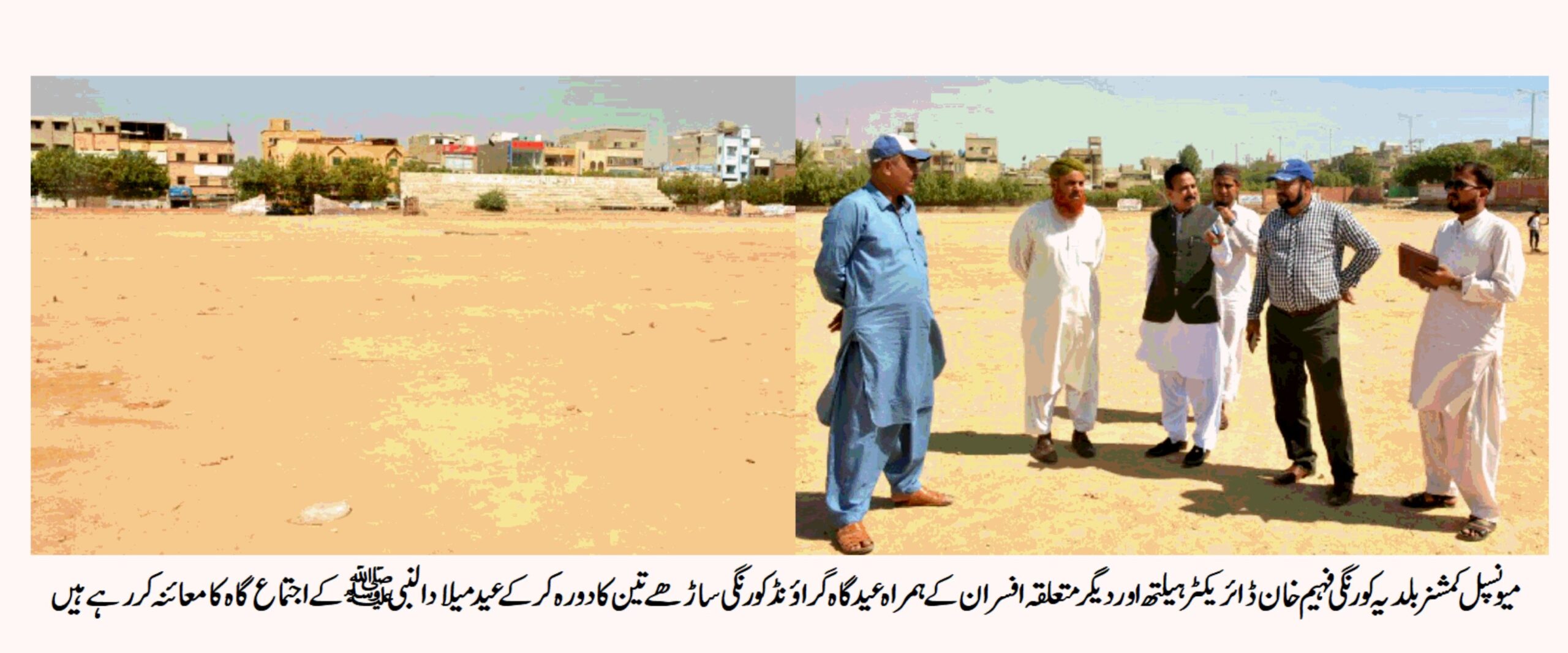 کراچی : میونسپل کمشنر بلدیہ کورنگی فہیم خان نے کہا کہ عید میلاد النبی ۖ کے موقع پر عاشقان رسولۖہر ممکن سہولیات کی فراہمی کو یقینی بنا نے کے لئے تمام تر دستیاب وسائل اور کاوشوں کو بروئے کار لائیں گے بلدیہ کورنگی کی جانب سے عید میلاد النبی ۖ کے حوالے سے جلوسوں کے روٹس اور عبادت گاہوں ،محافل گاہوں کے اطراف صفائی وستھرائی ،روشنی کے انتظامات کی بہتری اور تجاوزات و رکاٹوں کا خاتمہ یقینی بنا یا جارہا ہے ان خیالات کا اظہار انہوں نے عیدگاہ گرائونڈ کورنگی نمبرساڑھے تین پر منعقد ہونے والے عید میلاد النبی ۖ کے اجتماع گاہ کا دورہ اور کورنگی زون میں جاری انتظامات کا معائنہ کرتے ہوئے کیا۔