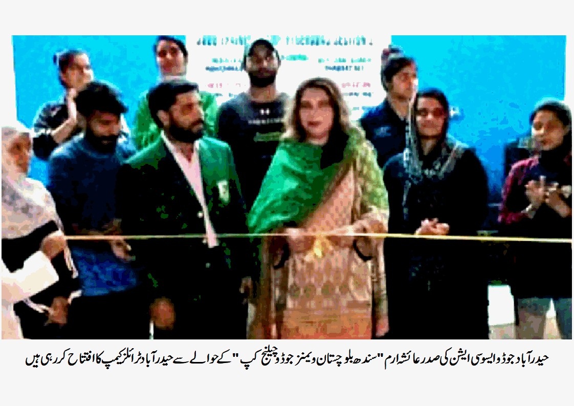 حیدرآباد اولمپک اسپورٹس کمیٹی کے سیکریٹری پرویز احمد شیخ کی سرپرستی و حیدرآباد جوڈو ایسوسی ایشن کے صدر عبدالرحیم خان، سیکریٹری محمد آصف، کوچ شہباز خان کی نگرانی میں لگائے گئے مزکورہ کوچنگ کیمپ میں مدعو دیگر معزز مہمانوں میں گورنمینٹ ڈگری کالج لطیف آباد کے ڈائریکٹرز فزیکل ایجوکیشن احمد نواز و طارق توفیق اور گورنمینٹ نذرتھ گرلز کالج حیدرآباد کی ڈائریکٹرز فزیکل ایجوکیشن سیدہ نسیمہ شاہ شامل ہیں۔ قبل ازیں مہمان خصوصی و دیگر مہمانوں کی آمد پر انہیں عبدالرحیم خان، محمد آصف، شہباز خان، بناز معصوم،رابیل شیخ، تنویر خانم، طوبی شیخ اور جوڈوکاز نے پھولوں کے تحائف پیش کیئے۔ بعد ازاں عائشہ ارم نے ربن کاٹ کر کیمپ کے باقائدہ افتتاح کا اعلان کیا۔ مذکورہ کیمپ سندھ جوڈو ایسوسی ایشن کے سیکریٹری جنرل محمد رفیق کی ہدایات پر حیدرآباد میں لگایا گیا ہے اور امید ہے کہ یہاں کی جوڈوکاز تمام ویٹس میں نہ صرف سندھ کی نمائندگی کریں گیں بلکہ میڈلز بھی اپنے نام کریں گیں۔